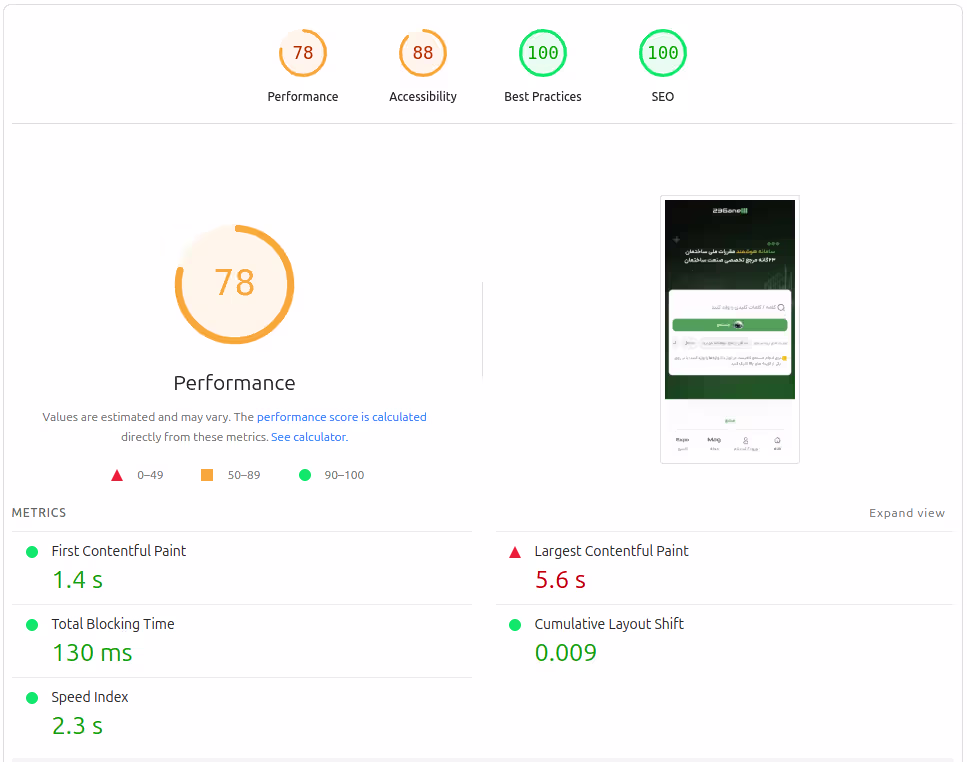 This performance score represents the website’s performance in mobile view.